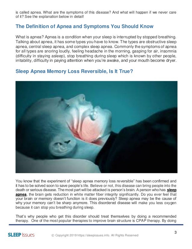 Sleep apnea memory loss reversible. Sleep apnea a sleep disorder in which breathing is briefly and repeatedly interrupted during sleep may be doing more than. September 8 2014 source. Shedding weight has one more new benefit for overweight and obese people.